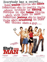 少女薇欧拉(阿曼达拜恩斯)长相青春可人,笑起来也杀伤力一片,可漂亮的她却是个疯狂足球迷。但该死的学校居然砍掉了女生足球项目,教练也不许薇欧拉进男子队伍,她只能在家闷闷不乐。这时,本该去新学校报到的双胞胎弟弟赛巴斯蒂安却决定离家出走两个星期,去伦敦追求自己的音乐梦。薇欧拉突然灵机一动,为什么不代替身材相似的弟弟报名呢,何况弟弟学校的足球队正是自己以前足球队的最强敌手!足球的吸引力加小小的复仇心态,心动不如行动,造型师一番打扮,薇欧拉果然报名成功!但一切可没她想象的容易,住进男生宿舍的她要保持不穿帮简直太困难了!更让薇欧拉不知所措的是,她居然爱上了英俊室友杜克(钱宁塔图姆)大帅哥一心把她当成知心兄弟,薇欧拉更第一个知晓了杜克喜欢学校最漂亮的奥莉维亚的消息。还以为事情不会更糟,她却发现大美女奥莉维亚喜欢上了有点书呆子气的赛巴斯蒂安,当然,也就是自己!谁让女扮男装的薇欧拉完全符合大美女完美情人的条件敏感而又善解人意。坏事一箩筐而来,不仅塞巴斯蒂安的前女友莫妮卡来凑热闹,连弟弟赛巴斯蒂安也居然提前回来了,偏偏这傻弟弟还完全不知道自己的身份已经被占用了